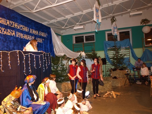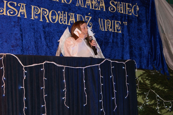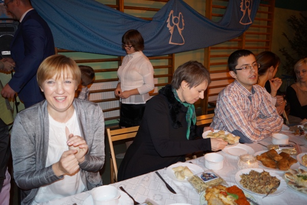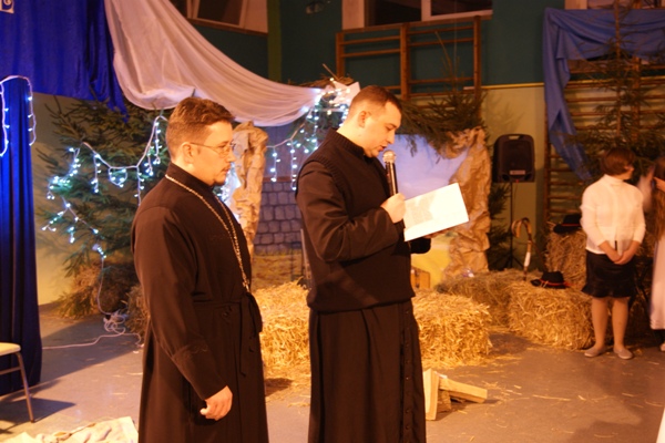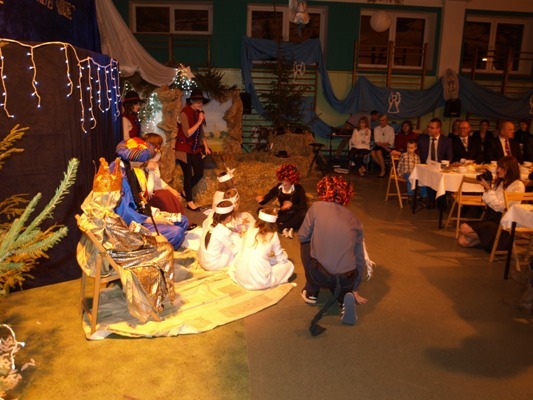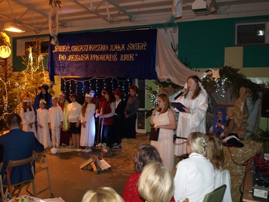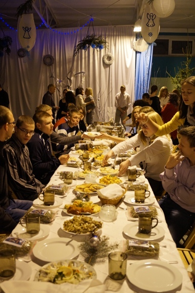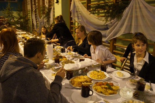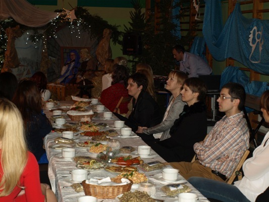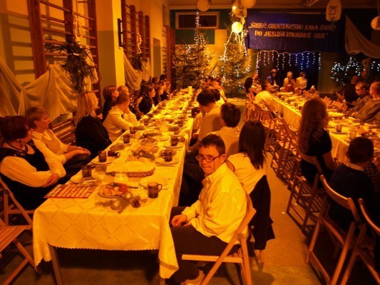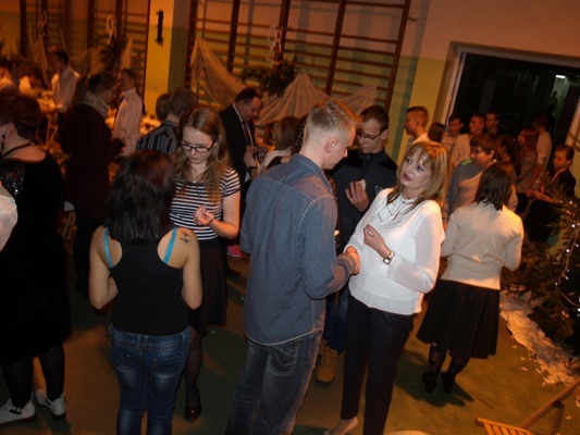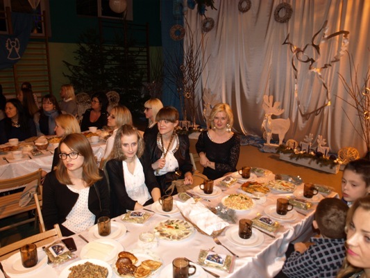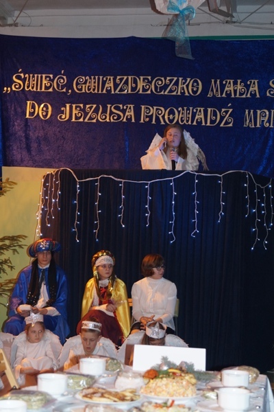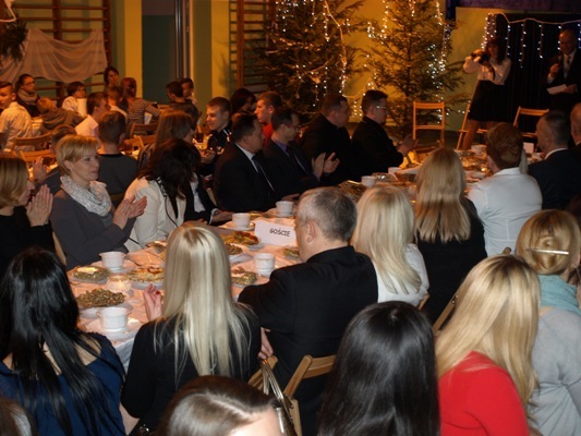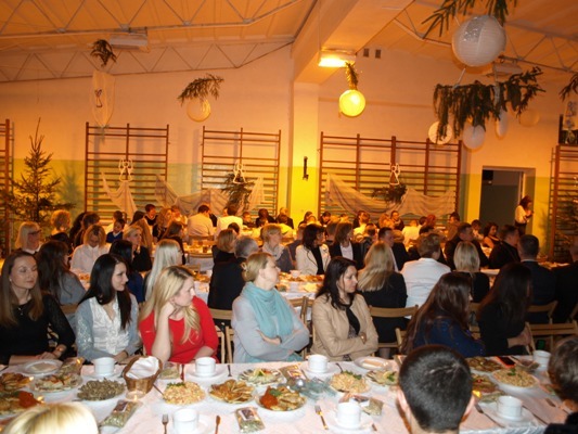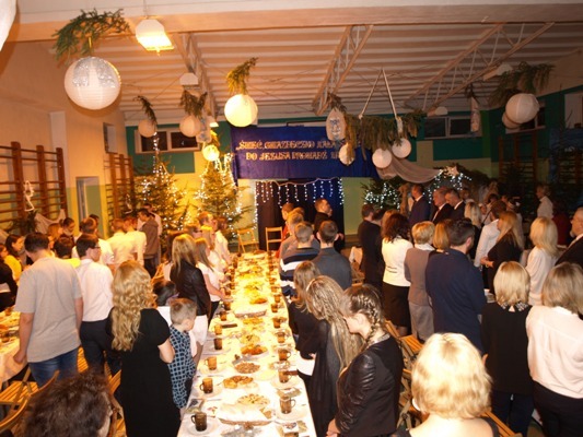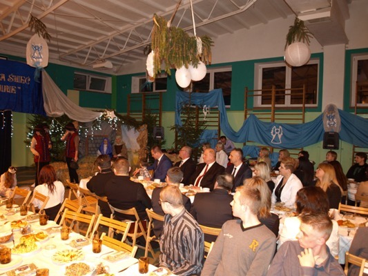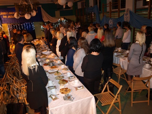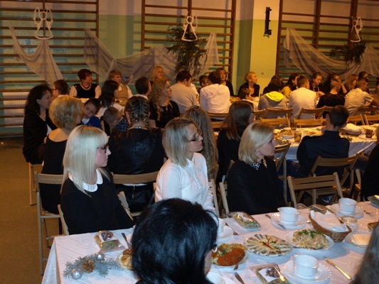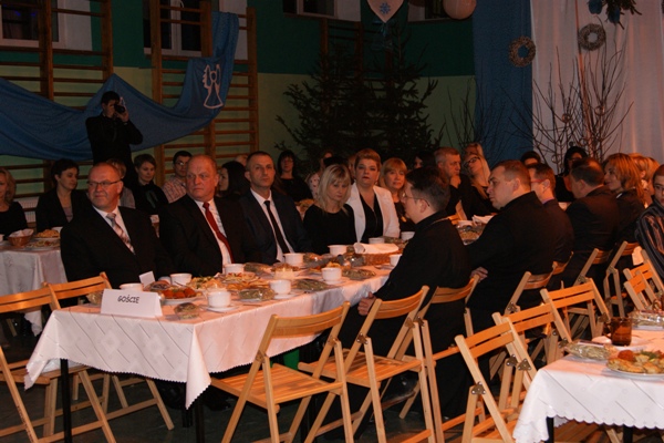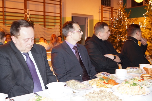 Tak jak w rodzinnych domach i jak głosi tradycja dzieci, młodzież, nauczyciele oraz goście połamali się opłatkiem życząc sobie Wesołych Świąt. Podczas uroczystej wigilii nie zabrakło wspólnej modlitwy, którą poprowadził ks. Paweł Kubiszyn oraz śpiewania kolęd i pastorałek.