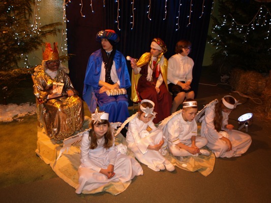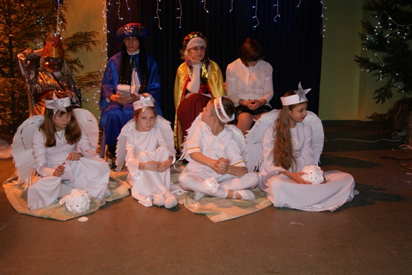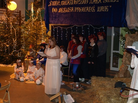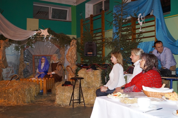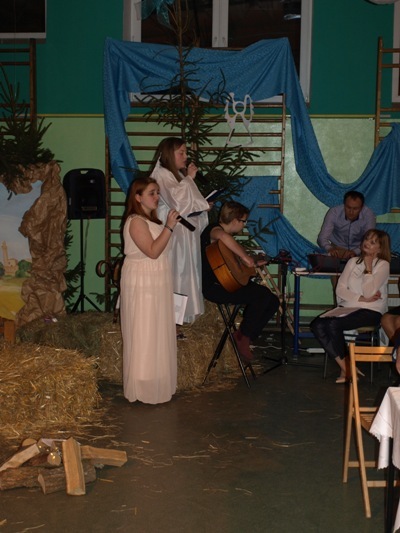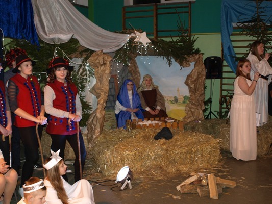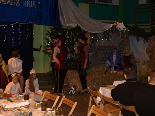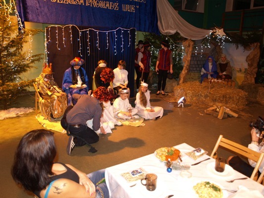 Na tę uroczystą kolację wychowankowie bursy oraz grup wychowawczych przygotowali przepiękny występ słowno – muzyczny, w czasie którego historia narodzenia Jezusa wpleciona została w czasy współczesne. Artyści dostarczyli widzom wiele wrażeń, uśmiechu i odrobinę wzruszenia.