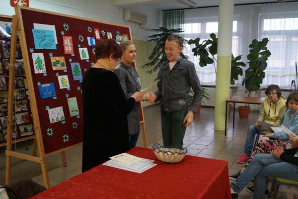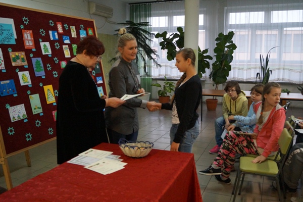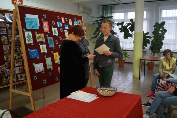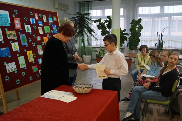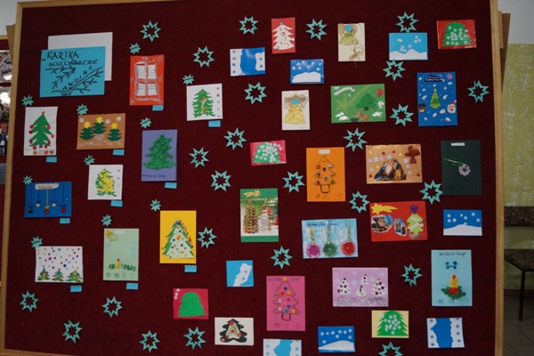 18 grudnia 2015 r. odbyło się rozstrzygniecie Szkolnego Konkursu Plastycznego ,,Kartka Bożonarodzeniowa”. Celem naszego konkursu było pogłębienie wiedzy dzieci i młodzieży o tradycji bożonarodzeniowej, kształtowanie umiejętności i zdolności artystycznych, indywidualna interpretacja tematu w formie plastycznej. Na konkurs wpłynęło 35 prac. Ocenie podlegała przede wszystkim samodzielność wykonania prac, pomysłowość ujęcia tematu, technika i estetyka.