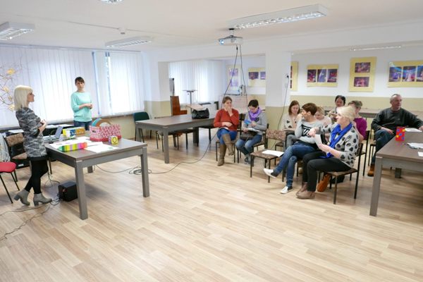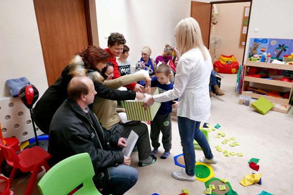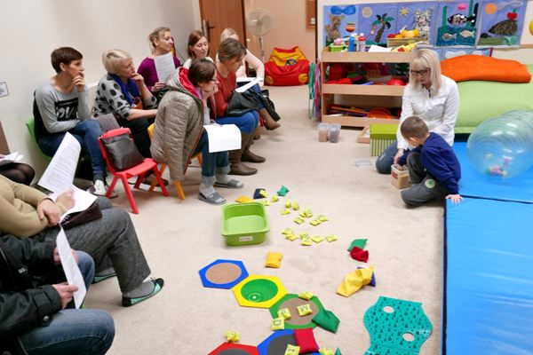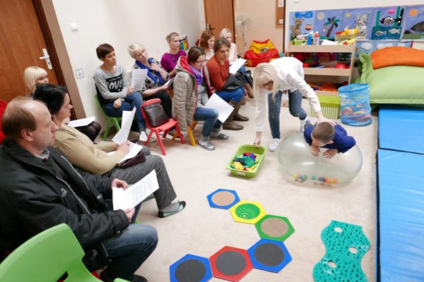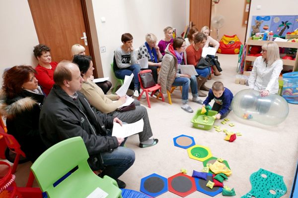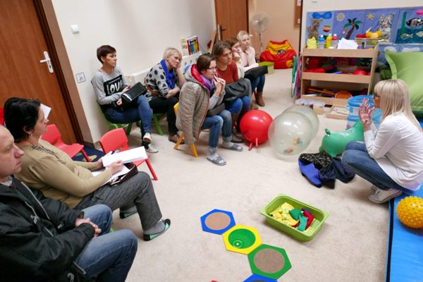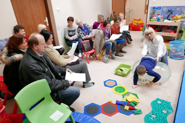 Dnia 10 lutego 2016 terapeuci - Joanna Goszko, Justyna Grochecka i Magdalena Mielniczuk, pracujący z dziećmi w ramach zajęć Wczesnego Wspomagania Rozwoju Dziecka przeprowadzili szkolenie dla rodziców z zakresu zajęć ogólnorozwojowych i integracji sensorycznej.