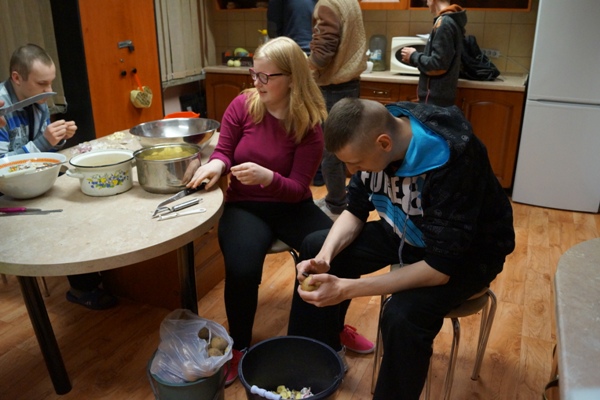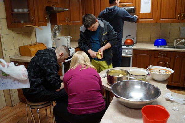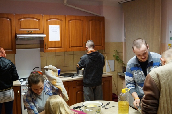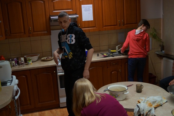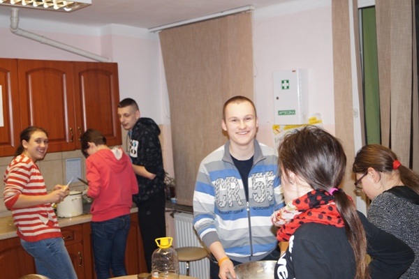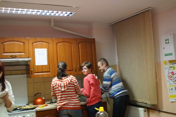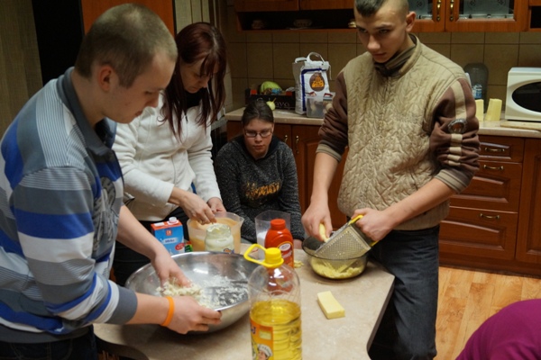 W dniu 09.02.2016 odbyły się zajęcia kulinarne z udziałem wychowanków grupy III i V. W trakcie zajęć osoby biorące udział poznały przepis na pizze i sosy do frytek. Chłopcy i dziewczęta chętnie przygotowywali składniki niezbędne do pizzy. Nasi wychowankowie w trakcie przygotowań opisywali jak w ich rodzinnych domach przygotowuje się pizze. Oprócz wymienionej pizzy dziewczęta i chłopcy przygotowali ziemniaki na frytki oraz smaczne sosy. Z upływem czasu osoby przygotowujące posiłek z niecierpliwością czekały na pierwsze efekty swojej pracy, którą można uznać za bardzo udaną, ponieważ wszystko zostało skonsumowane ze smakiem. Dzięki takim zajęciom nasi wychowankowie uczą się wspólnej pracy i poznają ciekawe przepisy kulinarne.