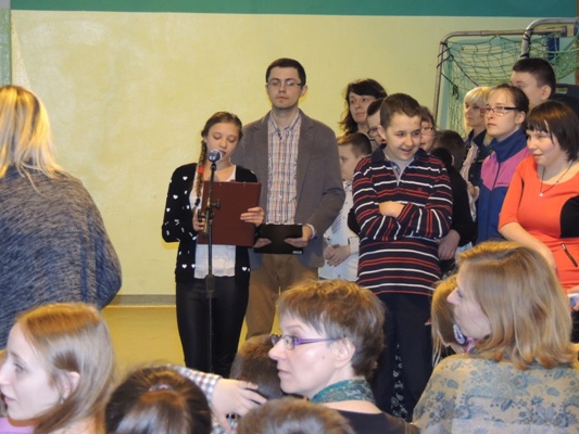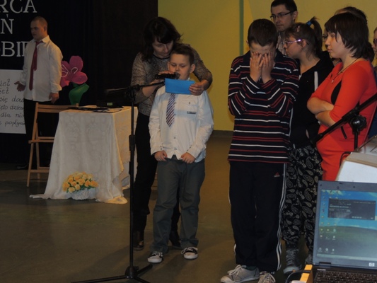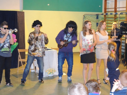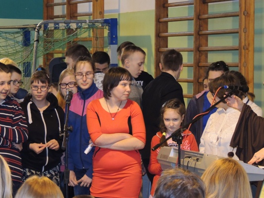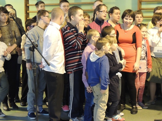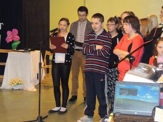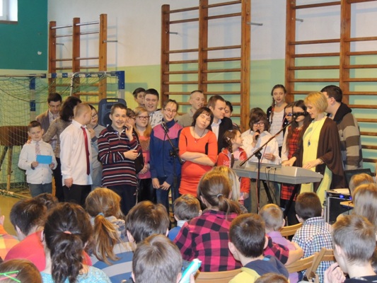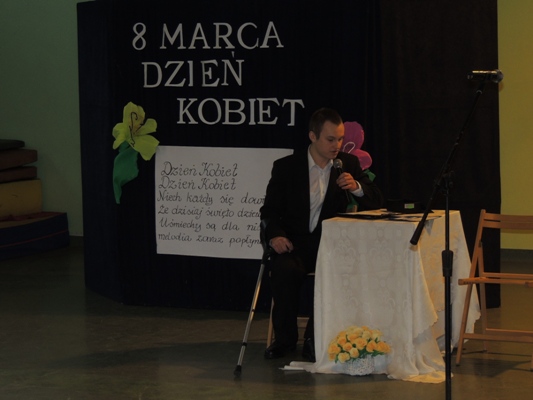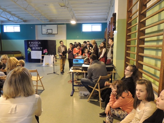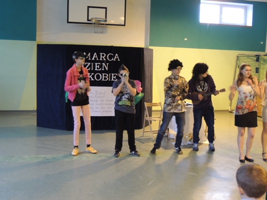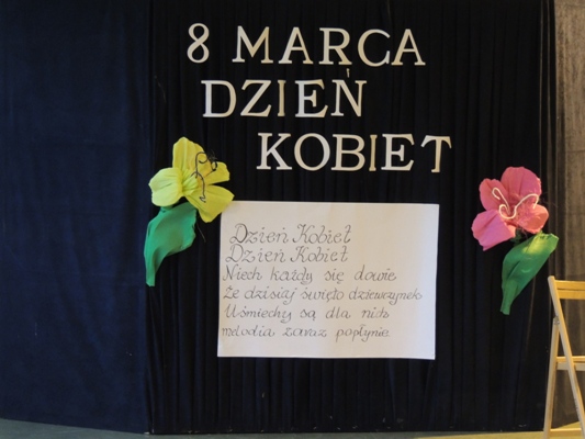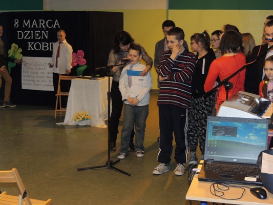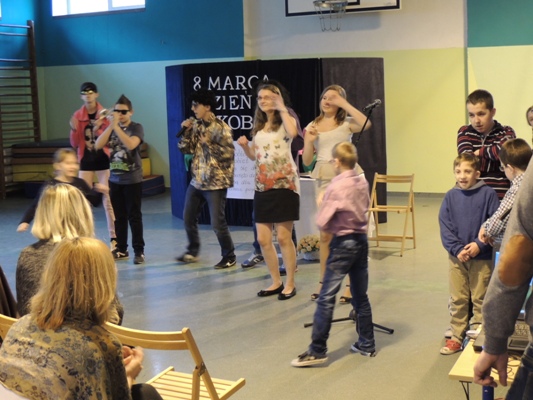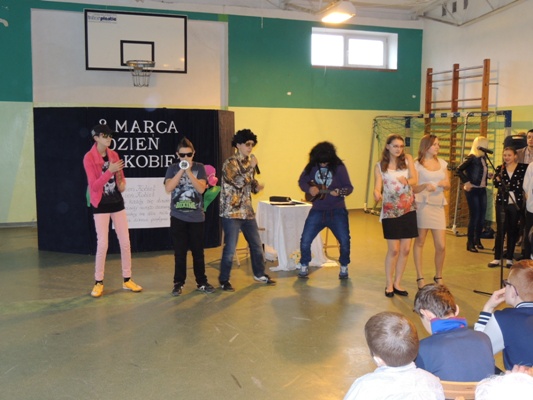 Aby te najserdeczniejsze życzenia przekazać w odpowiedniej do tak wyjątkowej okazji formie, żeńska część naszej szkolnej społeczności została zaproszona do wysłuchania montażu słowno-muzycznego. Mogliśmy zatem usłyszeć wiele interesujących faktów na temat płci pięknej, poznać zalety obchodzenia Dnia Kobiet oraz wysłuchać wyników ankiety, podczas której męskie grono usiłowało odpowiedzieć na ponadczasowe pytanie – po co na świecie są kobiety? A wszystko utrzymane w humorystycznej tonacji. Zabawne wystąpienia uczniów przepleciono aranżacjami znanych utworów we wspaniałym wykonaniu dzieci z naszego Ośrodka.