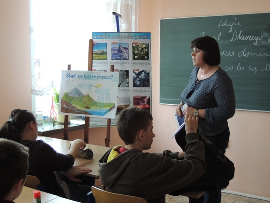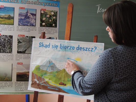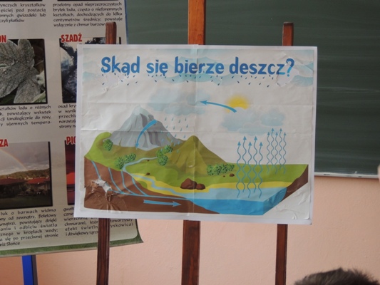 Uczniowie bardzo aktywnie brali udział w zajęciach, zapoznani zostali z różnymi zjawiskami atmosferycznymi oraz uświadomili sobie jak bardzo ważna w naszym życiu jest woda i jaki ma wpływ na środowisko.