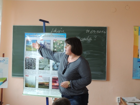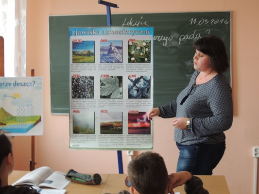 W dniu 11 marca 2016 r. nauczyciele przedmiotów matematyczno - przyrodniczych uczestniczyli w zajęciach otwartych z geogragii, które poprowadziła pani Agnieszka Tomicka. Zajęcia odbyły się w klasie I gimnazjum, a tematem lekcji było "Dlaczego pada?".