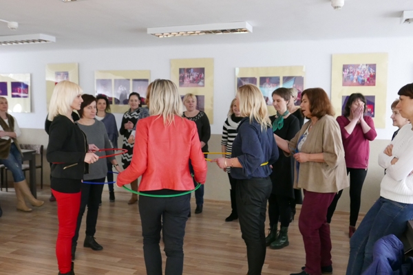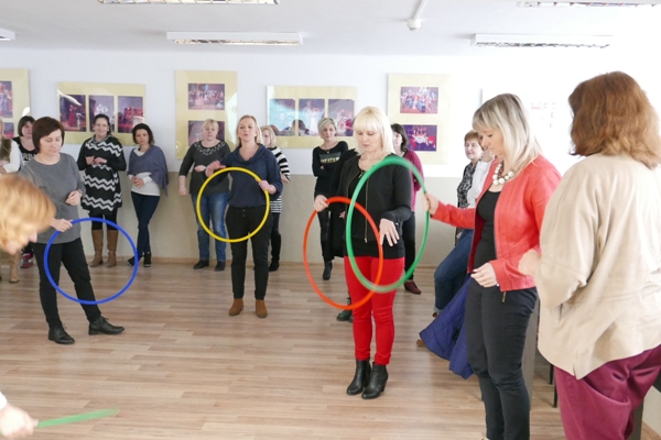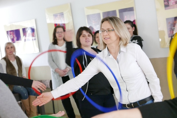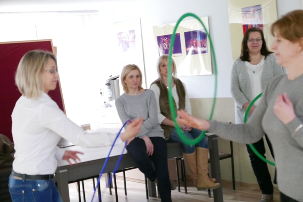 Uczestnicy zajęć uczą się nowych umiejętności społecznych i komunikacyjnych poprzez: