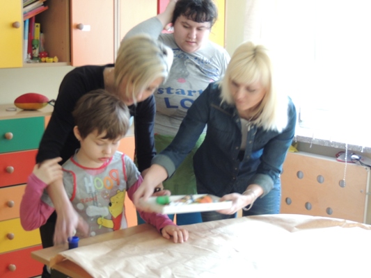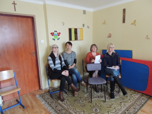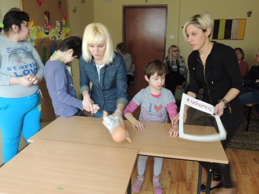 17 marca 2016r. w jednym z zespołów rewalidacyjno - wychowawczym odbyły się zajęcia otwarte dla nauczycieli, które poprowadziła p. J.Goszko. Podczas realizacji tematu "Poznajemy części ciała" nauczyciele mieli możliwość zaobserwowania w jaki sposób prowadząca zajęcia tworzy kod porozumiewania się z dziećmi za pomocą komunikacji werbalnej i niewerbalnej, jak usprawnia koordynację wzrokowo - ruchową oraz jak stosuje indywidualizację podczas zajęć.