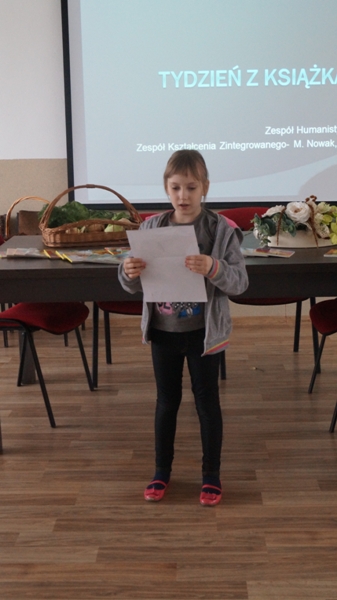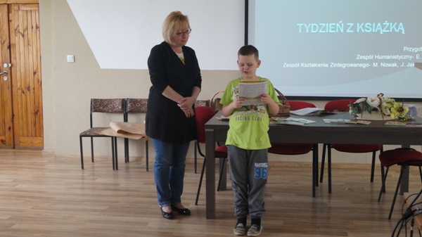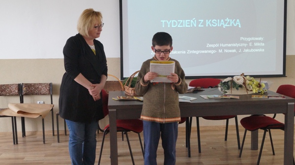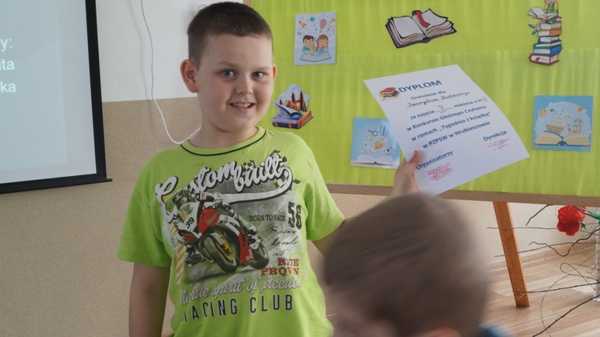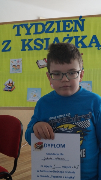 Uczniowie biorący udział w konkursie głośnego czytania zaprezentowali przygotowane wcześniej krótkie teksty. Wszyscy zostali nagrodzeni dyplomami a szczególnie wyróżnieni - Weronika Chojnacka, Grzegorz Pietrycki i Diana Żyła otrzymali nagrody rzeczowe – książki.