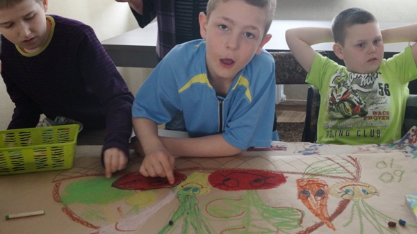 Następnie klasy biorące udział w konkursach wykonały prace plastyczne ilustrujące odczytany wiersz J. Brzechwy „Na straganie”. Uczniowie bardzo zaangażowali się w wykonanie prac. Powstały piękne dzieła, które możemy podziwiać na wystawie zorganizowanej na stołówce szkolnej.
