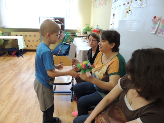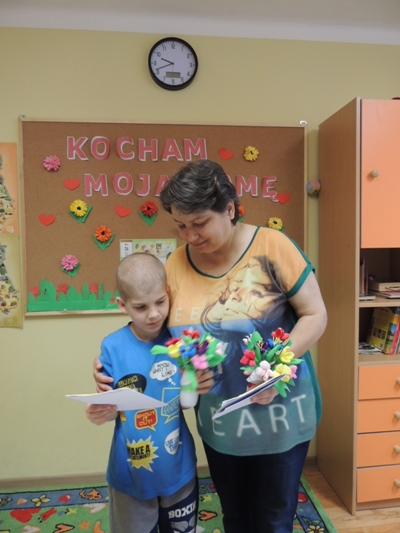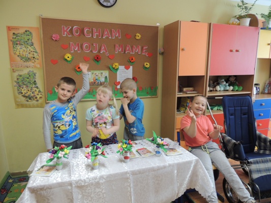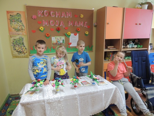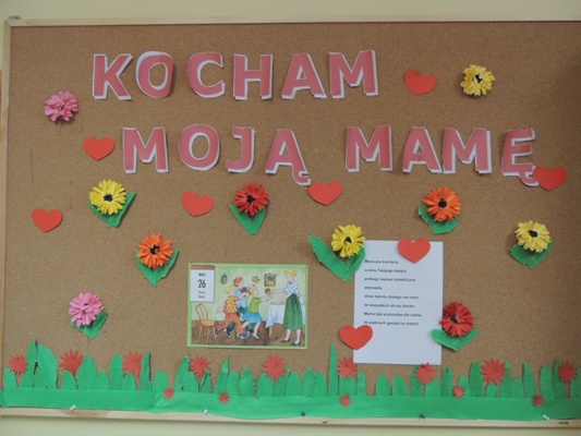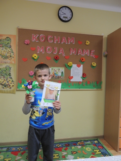 Z okazji zbliżającego się Dnia Matki uczniowie przygotowali dla swoich mam piękne zaproszenia na uroczystość, niespodziankę słowno- muzyczną oraz słodki poczęstunek. Mamy obejrzały występ dzieci, otrzymały od nich laurki z życzeniami i kolorowe bukieciki. Później zrobiły sobie pamiątkowe zdjęcia ze swoimi pociechami, a także wspólnie z dziećmi ucztowały. Tego dnia dzieciom było miło, że mamy są wśród nich. Wszyscy bawili się dobrze. Szczęśliwe mamy wyraziły chęć wspólnego przeżywania kolejnych uroczystości, bo przyjemnie spędziły czas.