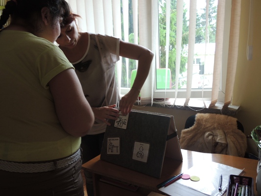 Celem zajęć było doskonalenie sprawności manualnych oraz wyzwalanie aktywności dziecka. Nauczyciele mieli możliwość zaobserwowania w jaki sposób prowadząca zajęcia tworzy kod porozumiewania się z dziećmi za pomocą komunikacji werbalnej i niewerbalnej oraz w jaki sposób stosuje indywidualizację podczas zajęć.
