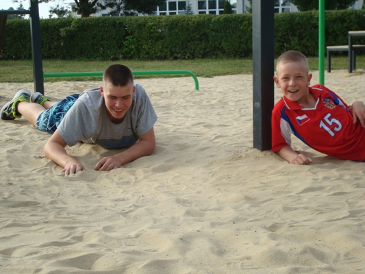 Sekcja sportowa grup wychowawczych rozpoczęła swoją czynną działalność wyjściem do Parku Linowego i siłowni na świeżym powietrzu przy HOSIR w Hrubieszowie. Wychowankowie pozostający na weekend chętnie brali udział w wspinaczce linowej, oraz pokonywaniu trudniejszych tras, a także ćwiczyli na siłowni.