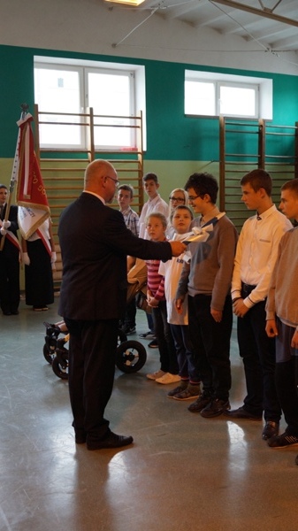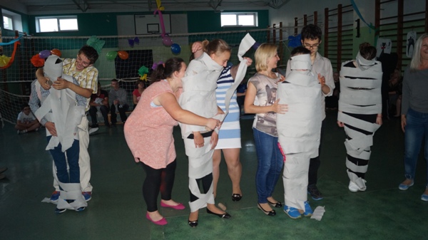W czwartek uczniowie, którzy w tym roku szkolnym rozpoczęli naukę w naszej szkole złożyli uroczyste Ślubowanie. Akt ślubowania poprzedziła część artystyczna w wykonaniu starszych uczniów, a prezentowała zwyczaje panujące w szkole. Pan Dyrektor złożył uczniom życzenia bardzo dobrych ocen, sukcesów, wspaniałych przyjaciół oraz spełnienia marzeń i przyjął nowych uczniów do społeczności szkolnej pasując ich wielkim, niebieskim ołówkiem. Po południu odbyła się druga część uroczystości Otrzęsiny. tanecznym krokiem przyjęto nowych uczniów do grona gawiedźi szkolnej i choć nie było łatwo to każdy dzielnie wykonywał arcytrudne zadania.