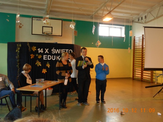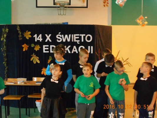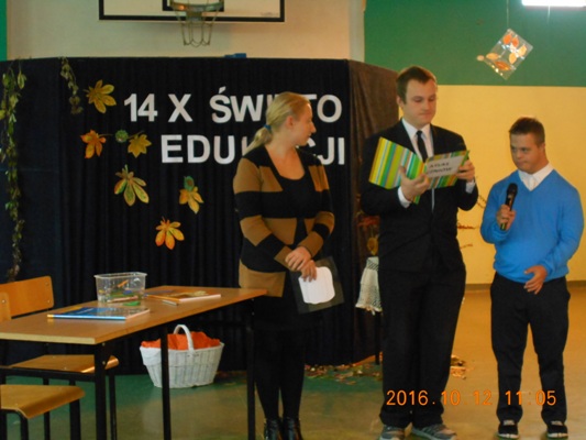 W dniu 13.10.2016 r. odbyła się uroczysta akademia z okazji Dnia Edulkacji Narodowej. Uczniowie naszej placówki przygotowali przedstawienie, w ktorym znalazły się wiersze, piosenki i scenki humorystyczne. Po uroczystej Akademii Dyrektor placówki wręczył Nagrody Dyrektora wyróżnionym Nauczycielom i Pracownikom Administracji i Obsługi.