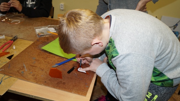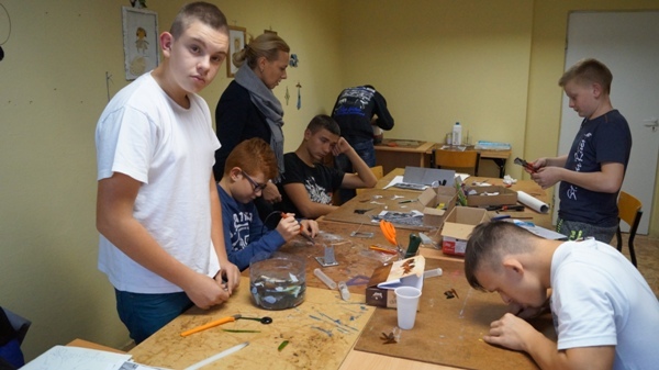 Warsztaty prowadzi pani Dorota Białonoga, odbywają się we wtorki o godzinie 15.30 w pracowni plastycznej. Młodzi twórcy opracowują ciekawe projekty. Poznają podstawowe zasady pracy ze szkłem, taśmą miedzianą oraz cyną lutowniczą, poznają zasady kompozycji, wykonują witraże i wykorzystują techniki patynowania i wykańczania prac. Wykonując witraże uczestnicy wykorzystują technikę Tiffany. Realizacja zajęć umożliwia poznanie i rozwijanie pasji, zainteresowań oraz zaspokaja poczucie dobrze wykonanego zadania. Zapraszamy do galerii.