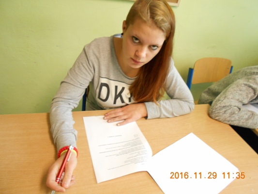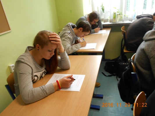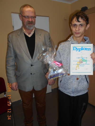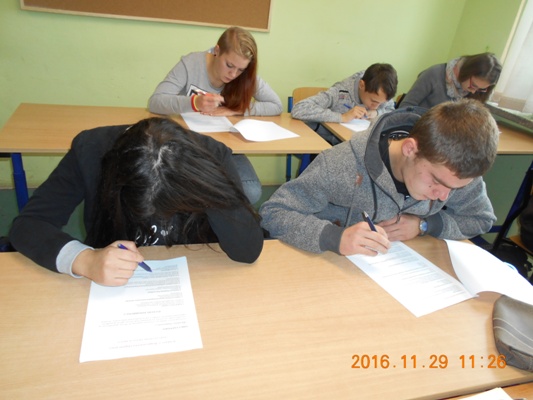 W dniu 30 listopada 2016r. uczniowie Zasadniczej Szkoły Zawodowej wzieli udział w III edycji szkolnego konkursu wiedzy o prawie pracy i bhp dla uczniów szkół ponadgimnazjalnych pt. „Poznaj swoje prawa w pracy”. Konkurs jest organizowany w szkołach uczestniczących w realizacji programu edukacyjnego „Kultura bezpieczeństwa”.