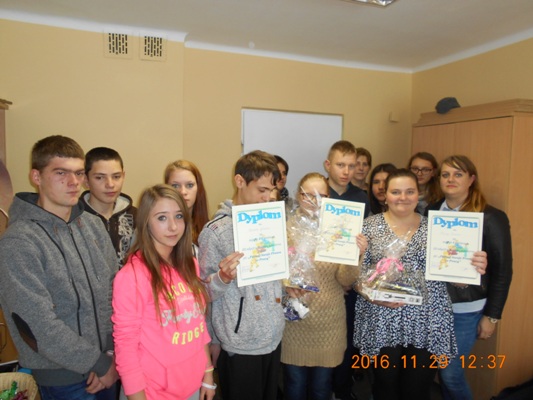 Dla laureatów konkursu przygotowano pamiątkowe dyplomy oraz nagrody rzeczowe. Z roku na rok konkurs ciesz się coraz większym zainteresowaniem wśród młodzieży naszej szkoły.