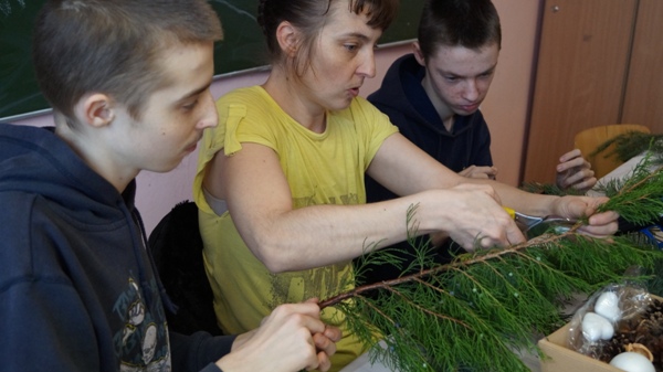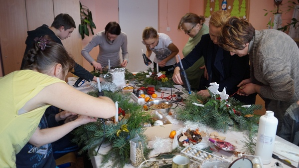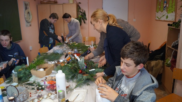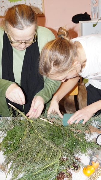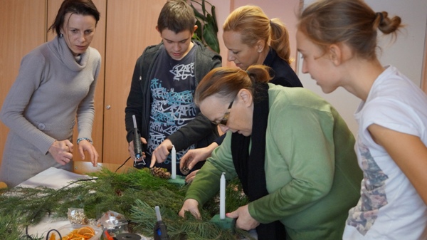 W atmosferze zbliżających się świąt pani Dorota Białonoga przeprowadziła lekcję otwartą dla rodziców i nauczycieli. „Stroiki świąteczne” były tematem zajęć podczas których dominowała metoda zajęć praktycznych oparta na samodzielnej twórczości i kreatywności. Rodzice aktywnie uczestniczyli w lekcji integrując się ze swoimi pociechami. Efektem tej współpracy były przepięknie wykonane stroiki świąteczne.