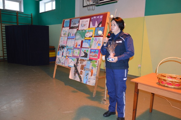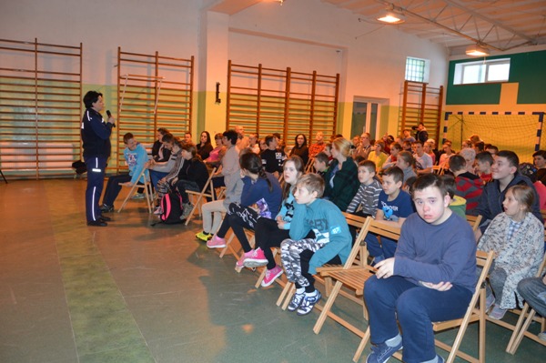 Uczniowie naszej szkoły w ramach działań profilaktycznych z zakresu Programu Bezpieczna + spotkali się z panią aspirant Edytą Krystkowiak funkcjonariuszką Komendy Powiatowej Policji w Hrubieszowie. Dzieci bardzo aktywnie uczestniczyły w spotkaniu na temat zachowania ostrożności podczas zimowego wypoczynku w czasie zbliżających się ferii. Odpowiadały na pytania, słuchały dobrych rad naszego gościa. Po spotkaniu odbyła się uroczystość wręczenia nagród w przeprowadzonym przez sekcję plastyczną konkursie pt. „Bezpieczne Ferie”.