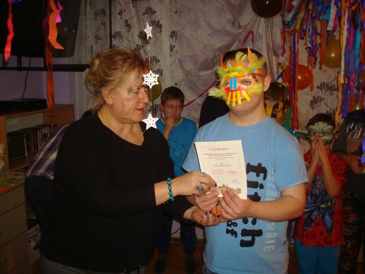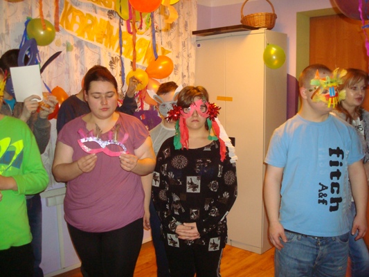 W dniu 11.01.2017 r. w grupach wychowawczych została zorganizowana dyskoteka karnawałowa "Jak karnawał to karnawał." Organizatorami tak hucznej imprezy była sekcja artystyczna oraz I grupa wychowawcza. Wychowankowie uczestniczyli we wszystkich grach i zabawach tańcząc i wspaniale się bawiąc. Rozstrzygnięto również konkurs na "Najciekawszą maskę"- wszyscy uczestnicy zostali nagrodzeni za kolorowe i bardzo pomysłowe maski. Wręczono także dyplomy i nagrody uczestnikom konkursu "Najpiękniejsza dekoracja świąteczno - zimowa sal"- zorganizowana przez sekcję artystyczną.
