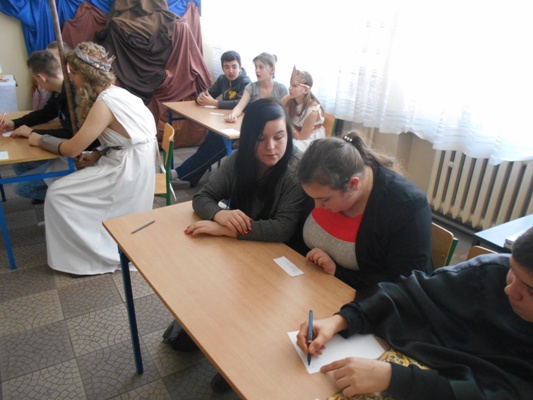 Podczas konkursu uczniowie mieli do wykonania 12 zadań dotyczących mitologii greckiej i rzymskiej, a także zaprezentować przygotowane przez siebie stroje, samodzielnie przygotować plakat przedstawiający boga greckiego lub rzymskiego, odpowiedzieć na pytania dotyczące znanych mitów, rozwiązać krzyżówkę, diagram, wyjaśnić związki frazeologiczne itp. Uczniowie nasi wykazali się dużą wiedzą mitologiczną, wytrwałością w realizacji przydzielonych zadań i umiejętnością współpracy i zdrowej rywalizacji.