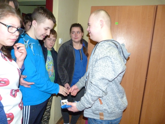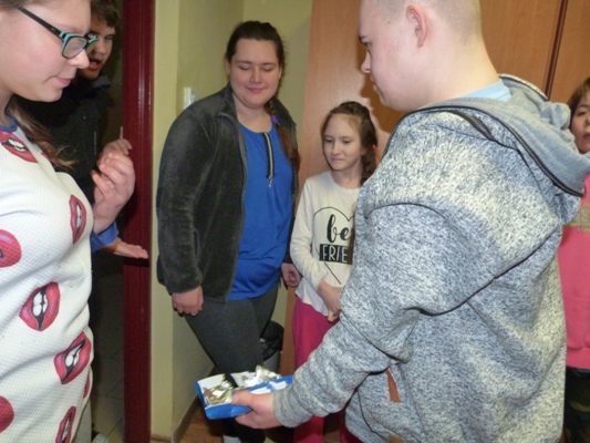 Wychowankowie grupy II odwiedzili swojego kolegę z grupy IV. Wizyta miała swój szczególny cel – urodziny Ernesta. Wszyscy odśpiewali głośno Sto lat oraz złożyli gorące życzenia urodzinowe dużo zdrowia, szczęścia i spełnienia marzeń. 100 lat! 100 lat Ernest!