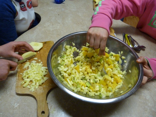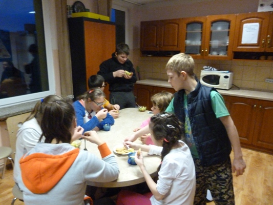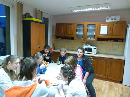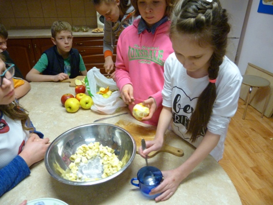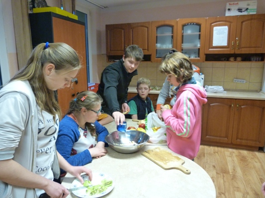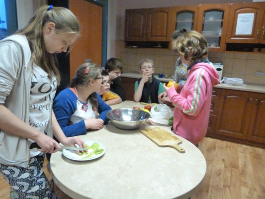 Wychowankowie grupy II w ramach aktywnych form spędzania czasu wolnego oraz rozwijanie swych zainteresowań uczestniczyli w zajęciach kulinarnych. W czasie tych zajęć przygotowali sałatkę owocową zgodnie z zasadami piramidy żywienia, promując w ten sposób zdrowy styl odżywiania się.