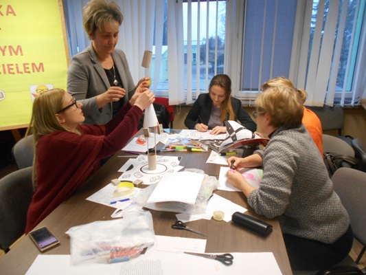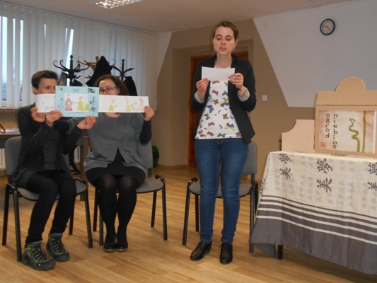 W dniu 13 marca 2017 roku odbyły się warsztaty dla nauczycieli nt. „Przez zabawę do czytania” które przeprowadziły pani Aleksandra Kopczyńska oraz pani Elżbieta Rafalska pracownicy Biblioteki Pedagogicznej w Hrubieszowie. Podczas szkolenia nauczyciele dowiedzieli się, w jaki sposób pracować z dzieckiem przy pomocy teatru Kamishibai. Jest to tradycyjna japońska sztuka przekazywania opowieści za pomocą teatru ilustracji. a także alternatywna forma czytania, która umożliwia jeszcze większe pobudzenie wyobrażni dzieci, wspomaga umiejętności promowania języka i zachęca dzieci do ustnych wypowiedzi, czytania, tworzenia własnych historyjek, inspiruje do malowania obrazów.