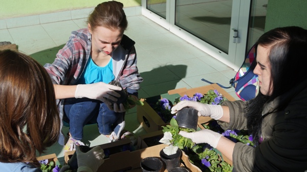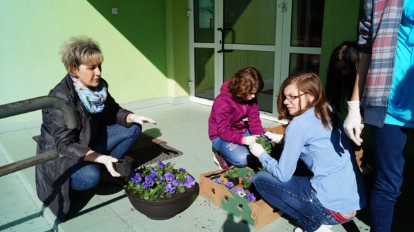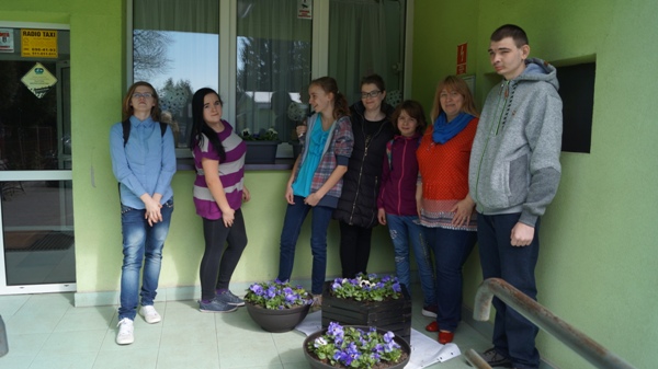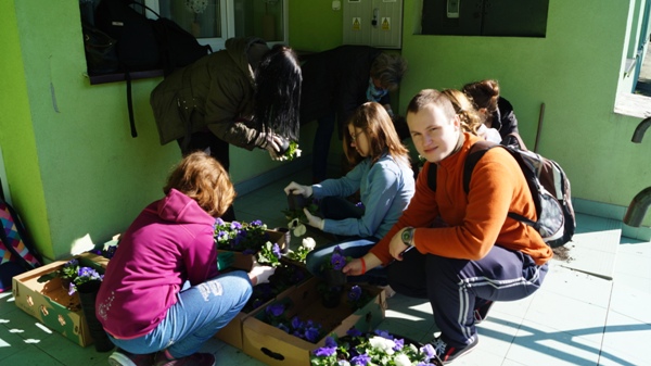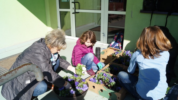Równocześnie z niebieskimi warsztatami plastycznymi trwała akcja ukwiecania na niebiesko wejścia do naszej placówki. Pani Renata Rostkowska - Kowalska i pani Ewa Otręba wspólnie z uczniami naszego ośrodka posadzili 100 niebieskich bratków. Nasza placówka jest już pięknie przystrojona i gotowa na kolejne działania w naszym Tygodniu Świadomości Autyzmu.
