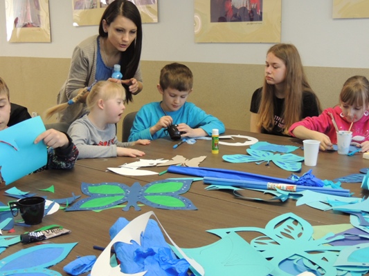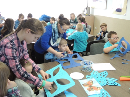 Niebieskimi integracyjnymi warsztatami plastycznymi rozpoczęliśmy obchody Światowego Dnia Świadomości Autyzmu. Niebieskie motyle wspólnie z naszymi uczniami wykonywali uczniowie I klasy Szkoły Podstawowej nr 3 w Hrubieszowie oraz uczniowie klasy I Gimnazjum im. Ks. St. Staszica w Hrubieszowie. Przepięknie wykonane motyle ozdobiły budynek naszego ośrodka. Nasi goście obejrzeli film o codziennym życiu ich rówieśników ze spektrum autyzmu. Słodki, niebieski motylek był nagrodą za wspólne świętowanie. Warsztaty prowadziły: pani Justyna Jakubowska, pani Justyna Grochocka i pani Joanna Goszko.