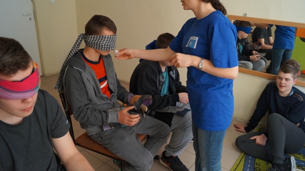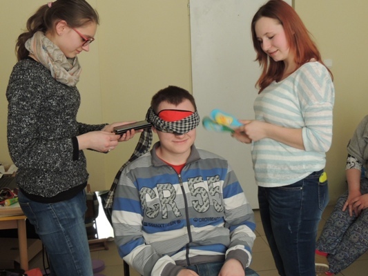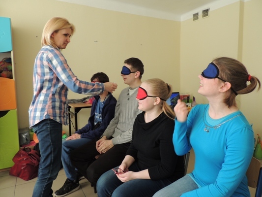 Uczestnicy mogli doświadczyć z jakimi problemami sensorycznymi mierzą się ich rówieśnicy z autyzmem. Obejrzeli filmy ilustrujące zachowania trudne. Młodzież z zaciekawieniem wzięła udział w spotkaniu. Chętnie wykonywali zaproponowane ćwiczenia i wczuwali się w rolę osoby z autyzmem. Warsztaty zakończyły się słodkim poczęstunkiem.