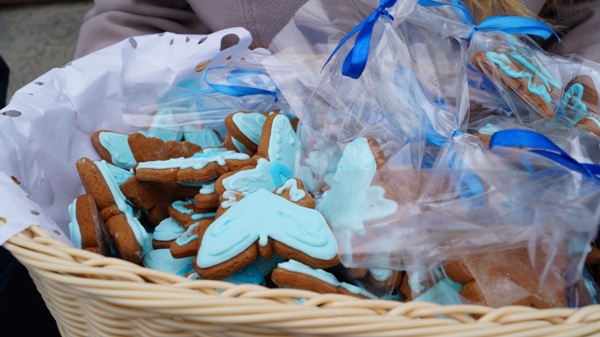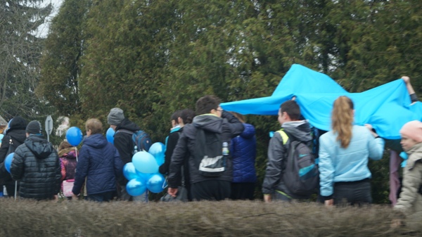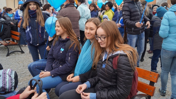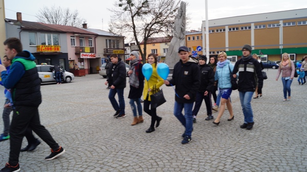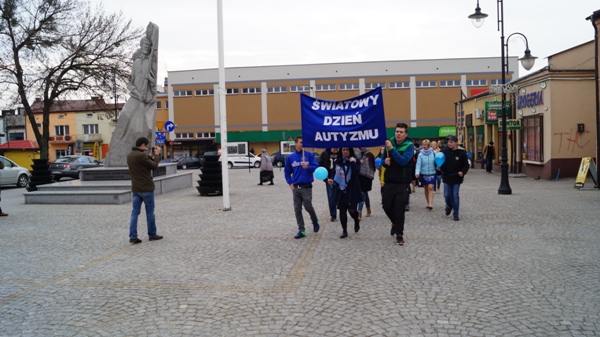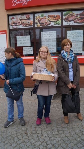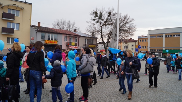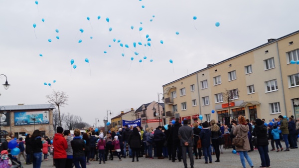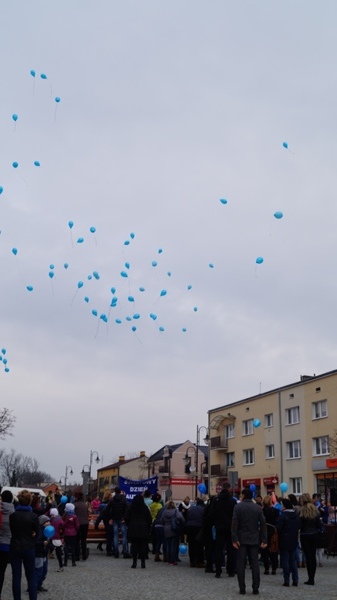 Po wykładzie w Niebieskim Korowodzie wyruszyliśmy na Deptak Miejski gdzie po zabawie integracyjnej z mieszkańcami Hrubieszowa wypuściliśmy ku niebu niebieskie balony. Przechodniom rozdawaliśmy niebieskie motyle, balony oraz ciasteczka również lukrowane na niebiesko. Za naszą sprawą w Hrubieszowie zrobiło sie niebiesko.