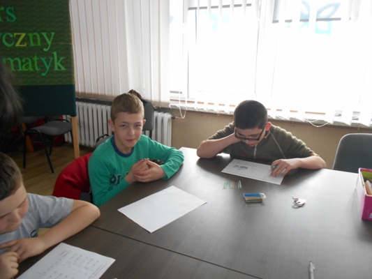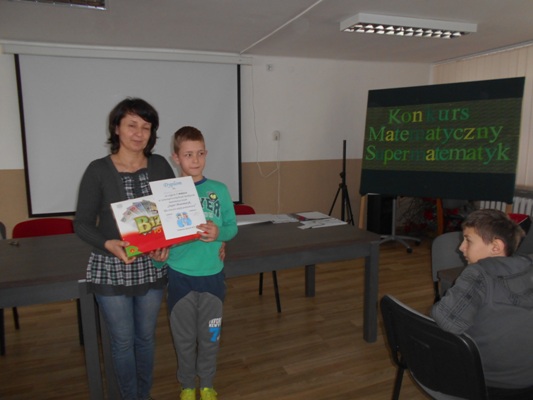 z klas młodszych 3 najlepiej rozwiązujących zadania uczniów zakwalifikowało się do drugiego etapu: Adam Martyniuk, Damian Seremak, Hanna Urbańczyk, a ostatecznie ,,Super Matematykiem klas I ” został Adam Martyniuk;