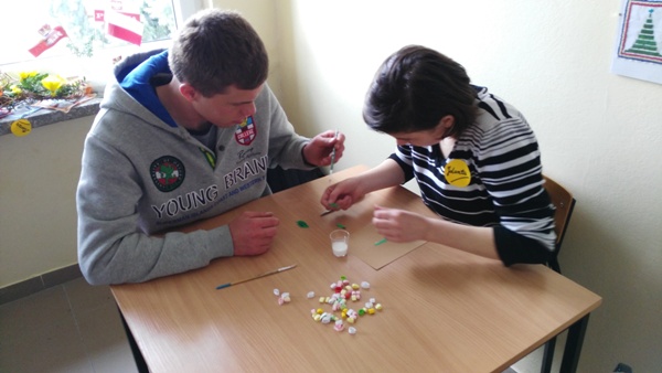 W dniu 5 maja 2017 roku odbył się w naszej placówce Szkolny konkurs dla klas PDP ,, Zrobimy to sami”. Młodzież zmierzyła się z praktycznymi zadaniami, w których miała wykazać się umiejętnościami z zakresu rękodzieła, ogrodnictwa, papieroplastyki i kulinariów. Uczniowie wyszywali ściegiem płaskim motyw koła oraz haftem krzyżykowym wzór serduszka z wykorzystaniem schematu. Ponadto wykonywali stroiki z użyciem gałązek, kwiatów i wstążek, prezentowali swoją wiedzę odnośnie roślin oraz tworzyli kartkę ozdobioną elementami quillingu. Wśród zadań było też samodzielne wykonanie wiosennych kanapek. Wszyscy pracowali z zaangażowaniem, starając się estetycznie i pomysłowo wykonać polecenia a nagrodami były słodkie drobiazgi i dyplomy dla wszystkich uczestników.