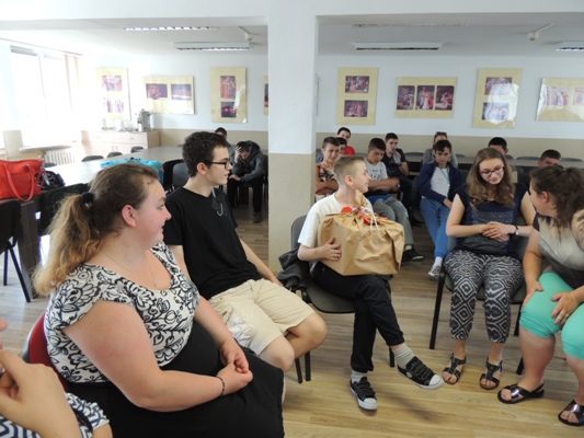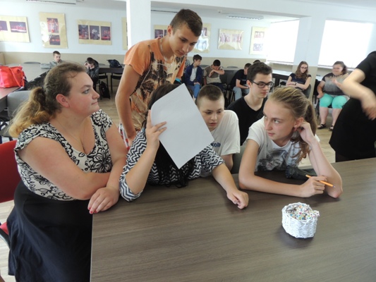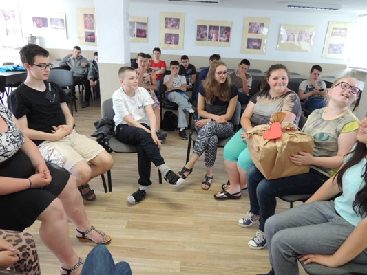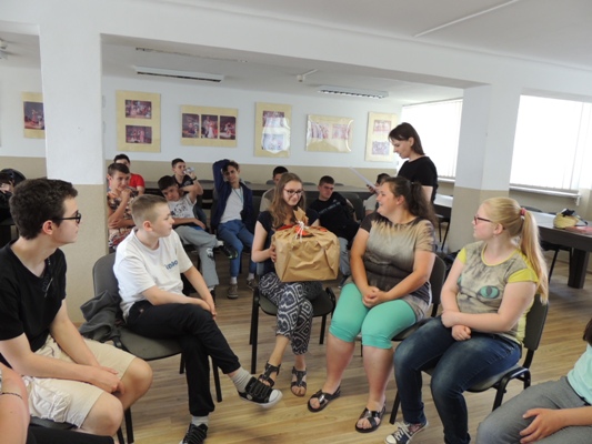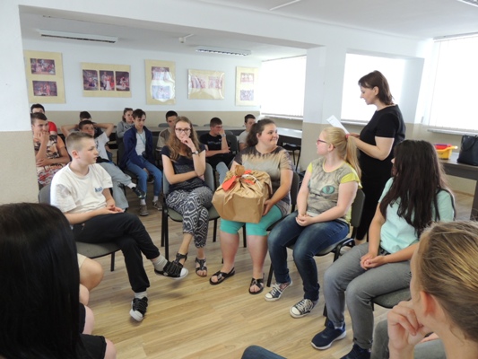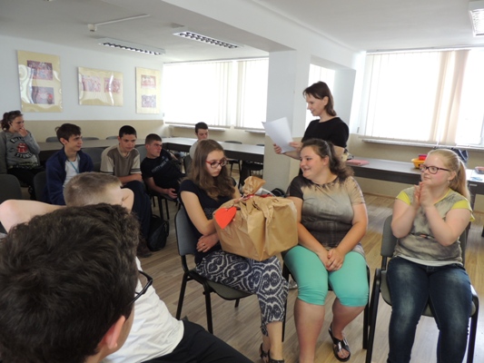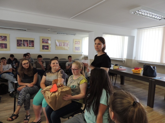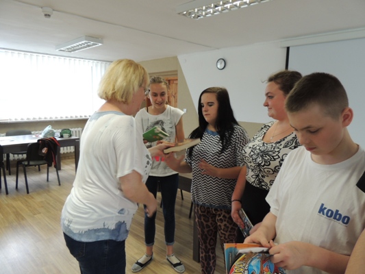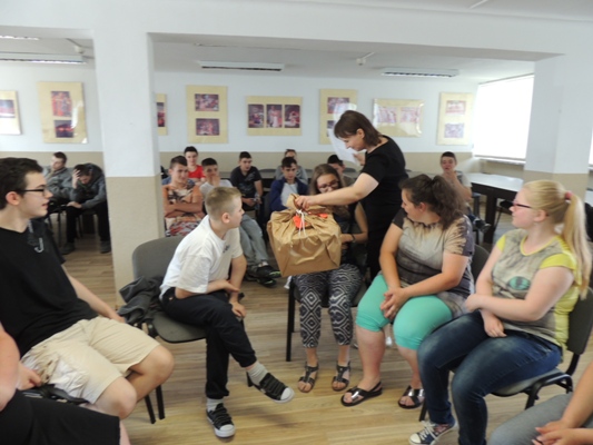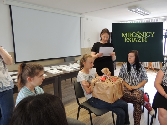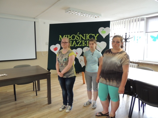 W środę 31 maja odbył się w naszym ośrodku konkurs pod hasłem „Miłośnicy książki”. Był to ostatni konkurs w ramach akcji „Trzy dni z książką. Wzięli w nim udział uczniowie klas gimnazjalnych i zawodowych tworząc dwie drużyny po 5 osób. Uczestnicy grali w kalambury i świetnie się bawili odgadując hasła związane z czytelnictwem i książkami, rozwiązywali również krzyżówkę, odpowiadali na pytania dotyczące różnych lektur i znanych pisarzy, układali wyrazy z rozsypani literowej. Na koniec wykonali rysunek ulubionego bohatera z książki. Za każde zadanie otrzymywali punkty w postaci cukierków. Uczniowie byli dopingowani przez kolegów z klasy. Wygrała drużyna z gimnazjum niewielką ilością punktów. Wszyscy uczestnicy zostali nagrodzeni dyplomami i cukierkami, a drużyna zwycięska otrzymała pamiątkowe książki.