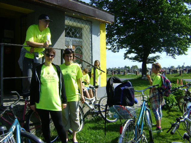 W dniu 02.06.2017 r. uczniowie naszej szkoły wraz z nauczycielami wzięli udział w VI Powiatowym Rajdzie Rowerowym na Orientację szlakiem Gotów. Wyjechaliśmy spod szkoły o godzinie 8.00 w specjalnie przygotowanych na tą okoliczność żółtych koszulkach i chociaż nie było łatwo dotarliśmy do punktu docelowego (Wioski Gotów w Masłomęczu) jako pierwsi uczestnicy rajdu. Tam zostaliśmy serdecznie powitani przez organizatorów a przede wszystkim przez Komandora Rajdu – Pana Stanisława Sitarza. Uczestniczyliśmy w prezentacji skansenu Wioski Gotów , śpiewaliśmy piosenki biwakowe i rajdowe, spożywaliśmy pyszne kiełbaski i grochówkę. Ten rajd z pewnością przypomniał nam ogólne zasady orientowania się w terenie, umiejętność posługiwania się mapą. Bardzo istotne były zasady bezpieczeństwa podczas pokonywania trasyi kształtowanie nawyku dbałości o środowisko. Po zakończonej imprezie rowerami wróciliśmy do szkoły a za rok? …cóż mamy nadzieję uczestniczyć w podobnym rajdzie ….już zbieramy na to siły.