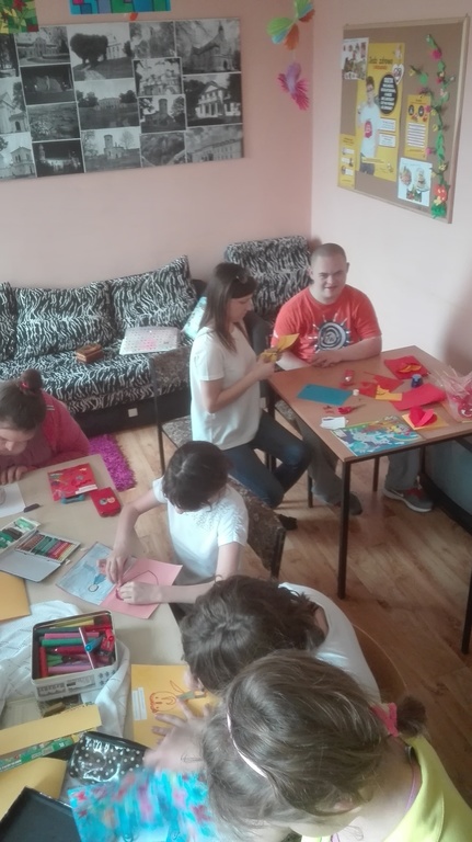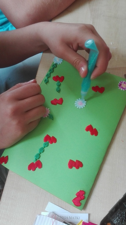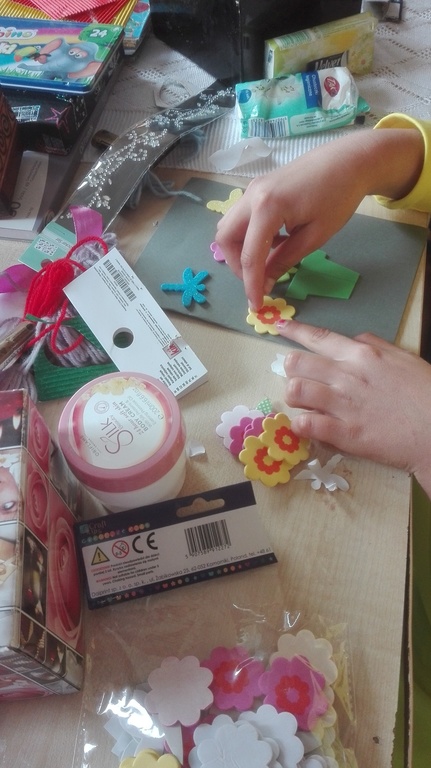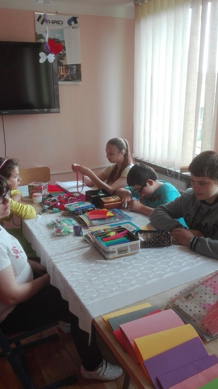 Dnia 22 maja 2017 r. wychowankowie grupy II i IV uczestniczyli w warsztatach plastycznych pt. " Prezent dla mojej mamy na Dzień Matki". W tym właśnie dniu wychowankowie mogli popisać się swoimi zdolnościami manualnymi i wyczarować uroczy upominek, który zostanie zapamiętany przez mamę na długo. Nie zabrakło tradycyjnych laurek, gdzie do przyozdobienia wykorzystano tasiemki, guziki i małe różyczki z krepiny. Samodzielnie wykonana laurka z pewnością wywoła uśmiech na twarzy każdej mamy, ponieważ nie ma nic lepszego niż prezent od serca.