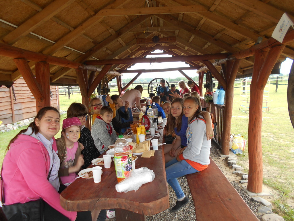 W dniu 8 czerwca 2017 roku uczniowie klas szkoły podstawowej (PU) i gimnazjum (GU) wraz z nauczycielami i opiekunami spędzili aktywnie czas w Gospodarstwie Agroturystycznym na Kresowym szlaku w Teptiukowie. Właściciel- pani Jowita Kurys oprowadziła uczestników wycieczki po gospodarstwie, zapoznała z szeroką ofertą przygotowaną dla gości.Dzieci skorzystały z zajęć hipoterapii. Na placu zabaw grały w piłkę, badmintona, organizowały wyścigi, korzystały z huśtawek i drabinek.Zaostrzone apetyty ukoiły kiełbaski z grilla oraz słodycze. Zadowoleni uczniowie zapowiedzieli swoją wizytę jesienią - na Święcie Pieczonego Ziemniaka.