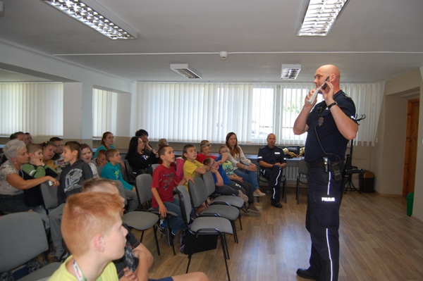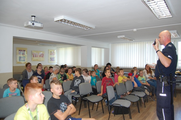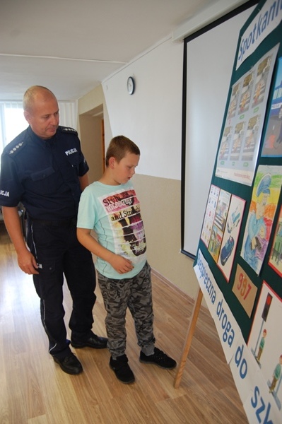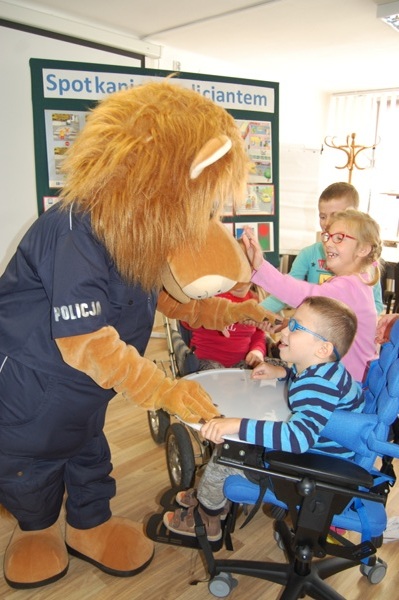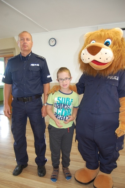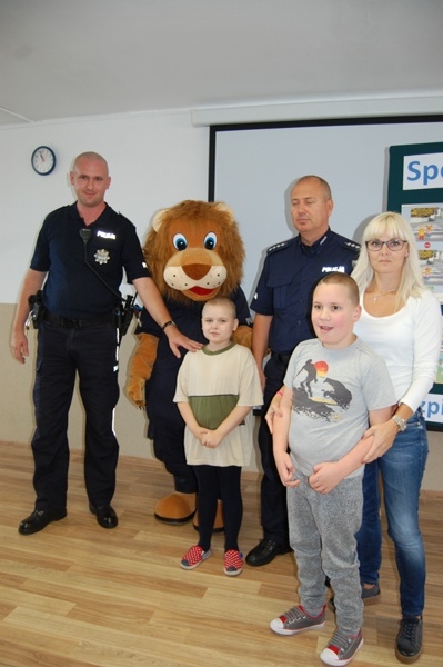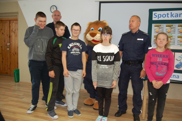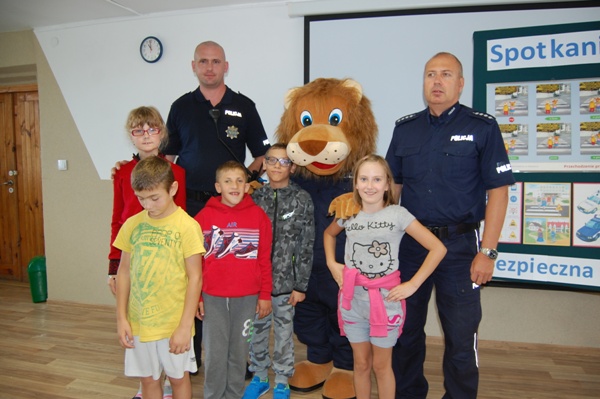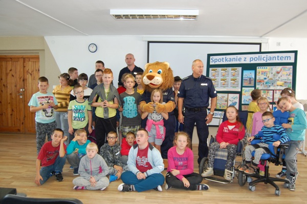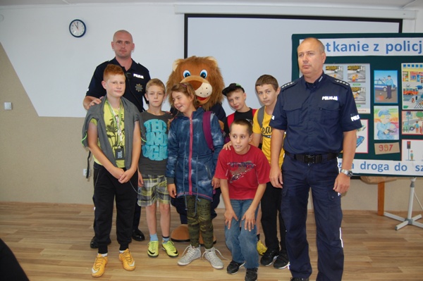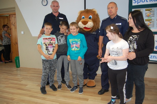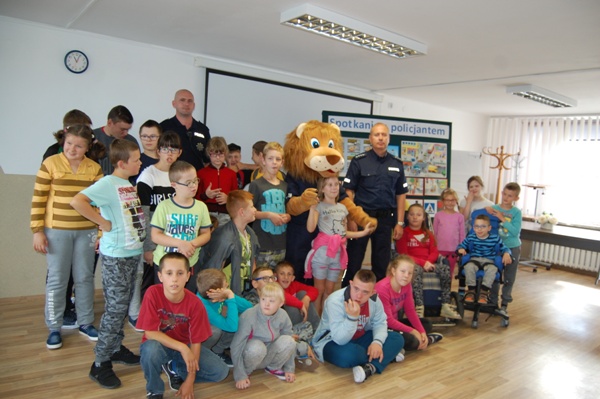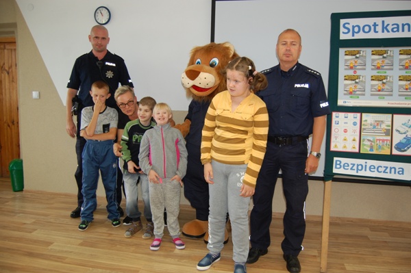 Uczniowie szkoły podstawowej spotkali się z funkcjonariuszami Komendy Powiatowej Policji panem Jarosławem Karkuszewskim i panem Radosławem Kulikiem by porozmawiać o zasadach bezpieczeństwa. Panowie zwrócili szczególna uwagę na zasady bezpiecznego poruszania się w drodze do szkoły oraz przypomnieli naszym najmłodszym wszystkie zasady bezpiecznego zachowania w różnych sytuacjach. Nagrodą za aktywne uczestnictwo w spotkaniu była wizyta policyjnej maskotki, przesympatycznego Sierżanta Lwa.