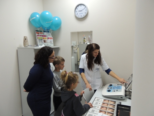 Uczniowie wysłuchali pogadanki miejscach wzmożonego hałasu, o szkodliwości decybeli na ucho człowieka i konsekwencji z tym związanych. Podczas pobytu w salonie uczniowie poznali także nowoczesne sposoby badania słuchu. Dowiedzieli się o audiometrii tonalnej, tympanometrze i widełkach stroikowych. A nawet uczestniczyli w badaniu słuchu. W ramach edukacji technicznej zwiedzili między innymi kabinę ciszy, obejrzeli słuchawki do badań. Zobaczyli nowoczesne aparaty słuchowe. Poznali ich budowę, sposoby dbania o nie. Dowiedzieli się kto może korzystać z aparatów i jaki jest koszt.