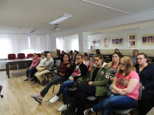 Dziewczęta z zainteresowaniem wysłuchały pani Ewy, zadawały pytania, dyskutowały. Na koniec spotkania otrzymały materiały informacyjne oraz ulotki na temat badań profilaktycznych do przekazania mamom.