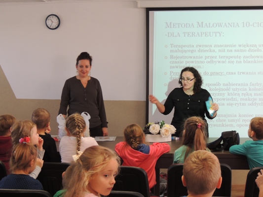 Uczniowie przed przystąpieniem do pracy zapoznali się z Metodą Malowania Dziesięcioma Palcami oraz posłuchali o Ruth Shaw twórczyni metody. Podczas malowania za pomocą rąk dzieci miały okazję do rozwijania sprawności manualnej, stymulowania zmysłu czucia. Ćwiczyli też wyobraźnię, planowanie. Dzieła powstały w atmosferze radości. Dzieci przestrzegały ustalonych zasad i każdy z 10 pędzli malował zwinnie tylko po papierze, wspaniałymi farbami uprzednio przygotowanymi wspólnie z ich wychowawczyniami.
