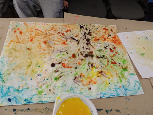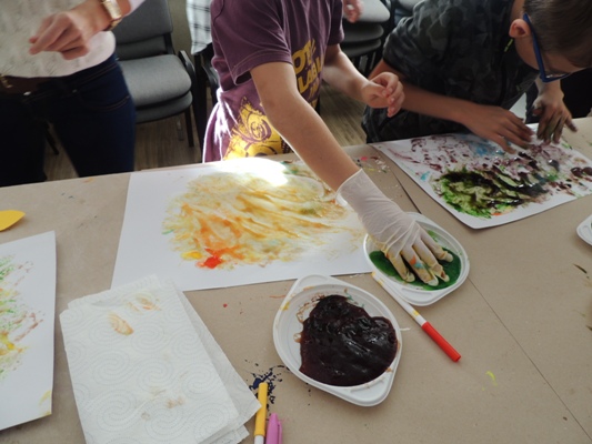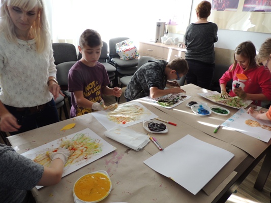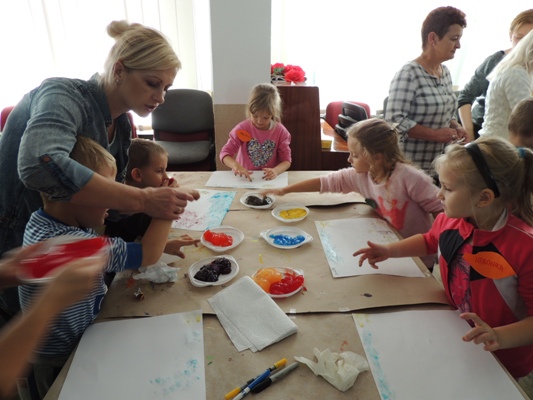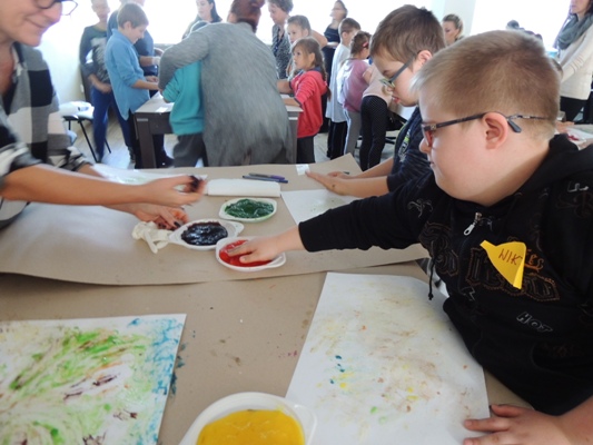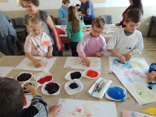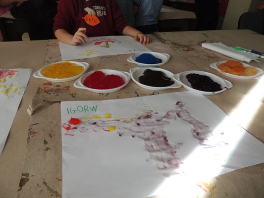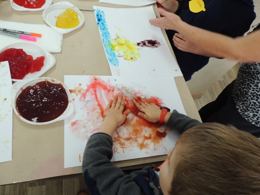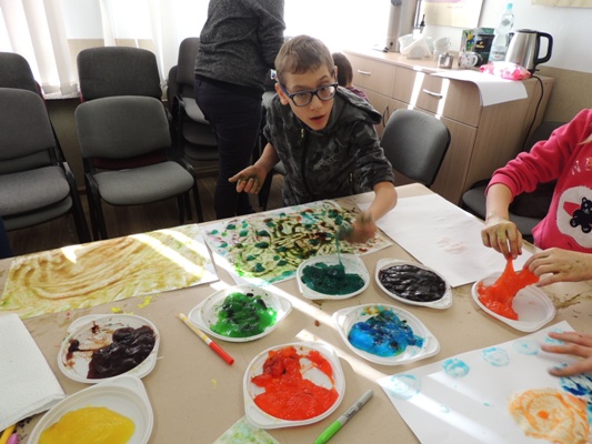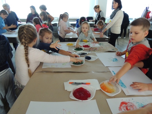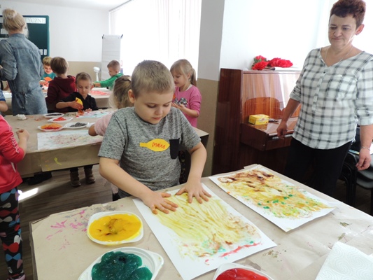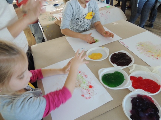 Malowanie palcami spodobało się dzieciom, a najbardziej niecodzienne farby, które były dużą atrakcją.