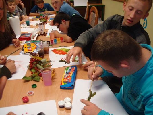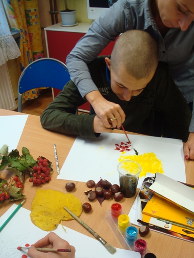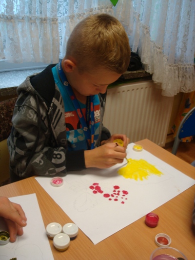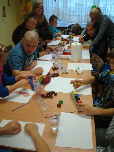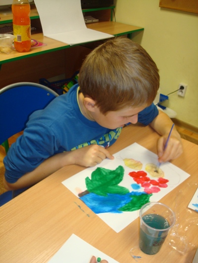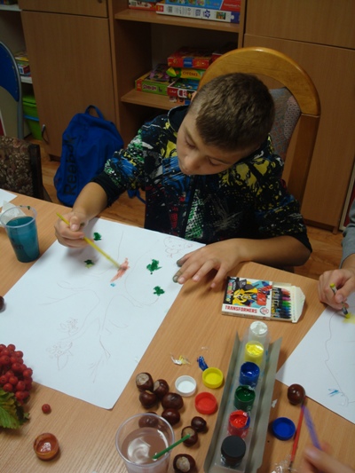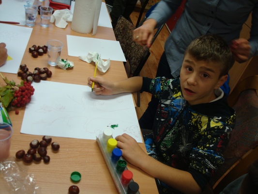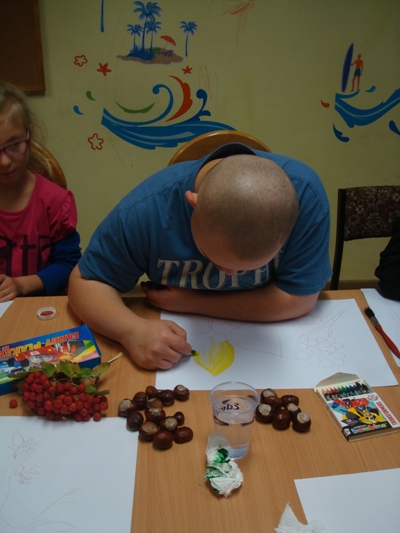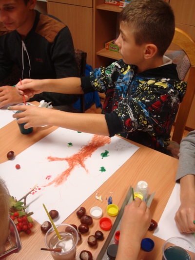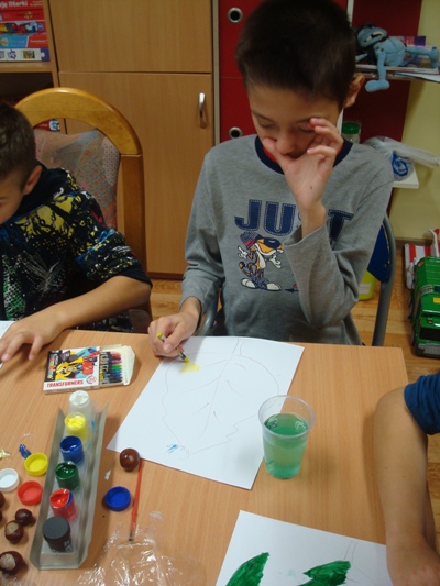 W 05.10.2017r. odbyły się zajęcia integracyjne "Barwy jesieni" z cyklu "JESIEŃ" w grupach wychowawczych, integrując się zajęcia zostały przeprowadzone w grupie I i IV. Wychowankowie malowali pejzaże i symbole barwami jesieni techniką dowolną. Zajęcia sprawiły wszystkim wiele radości.