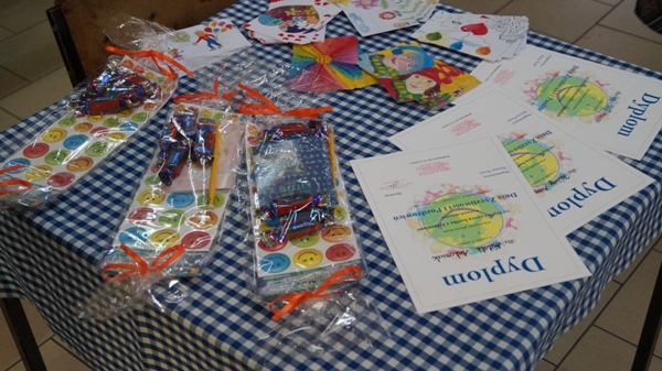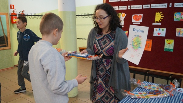 Nagrodzeni otrzymali wesołe naklejki, zeszyciki i słodycze.