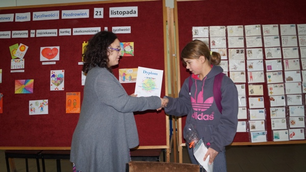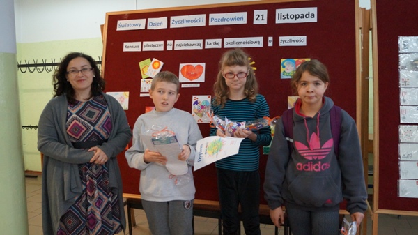 21 listopada obchodzony jest na świecie Dzień Życzliwości i Pozdrowień, dzień dobrych uczynków i pozytywnych emocji. Z tej okazji w naszym ośrodku został przeprowadzony konkurs na najciekawszą kartkę z życzeniami. Najbardziej oryginalne kartki uczestników konkursu będzie można obejrzeć w galerii placówki, a zwycięskie kartki wkrótce zostaną opublikowane w gazetce szkolnej. Poniżej wyniki konkursu: