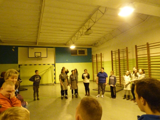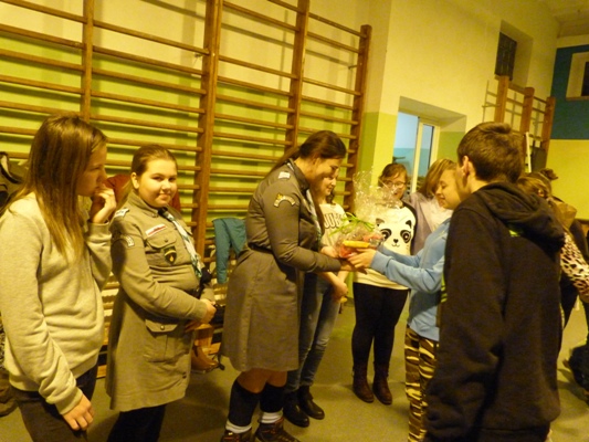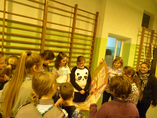 W dalszej części zajęć wychowankowie uczestniczyli w przygotowanych przez harcerki grach i zabawach, wspólnie śpiewano harcerskie piosenki przy akompaniamencie gitary. Zajęcia zakończyły się wręczeniem harcerkom plakatu z podziękowaniem, wykonanego przez wychowanki grupy II oraz wykonaniem wspólnego, pamiątkowego zdjęcia. Do zobaczenia, czuwaj!