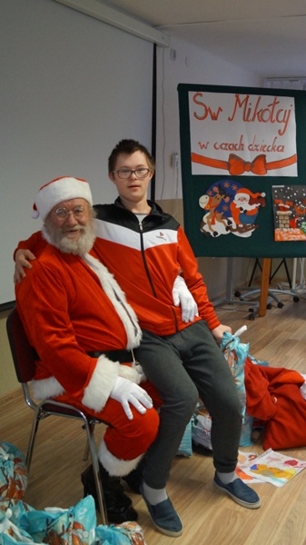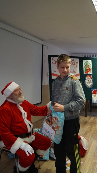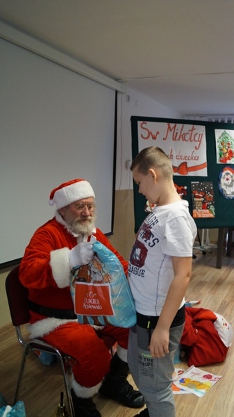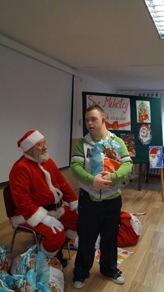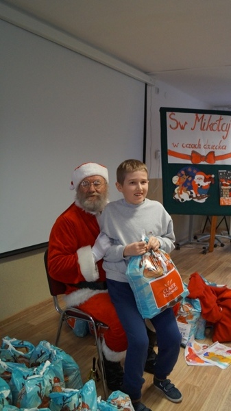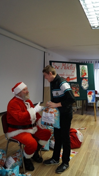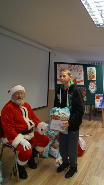 Uczniowie szkoły podstawowej oraz zespołów rewalidacyjno – wychowawczych przez cały rok dbali o dobre zachowanie i dzięki temu mogli spotkać się z tak wyczekiwanym Gościem. A nasz Gość był jak z bajki prawdziwa siwa broda, czerwony kubrak i wór pełen prezentów. Wierszyki, piosenki, ciekawe pytania skierowane do Mikołaja zostały nagrodzone wręczanymi dzieciom pięknymi paczkami. Uczniowie gromkimi brawami podziękowali Mikołajowi.