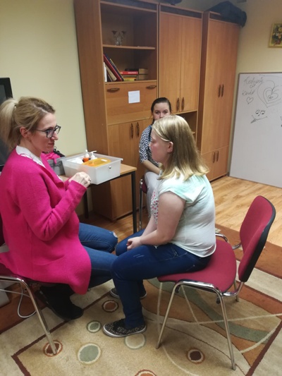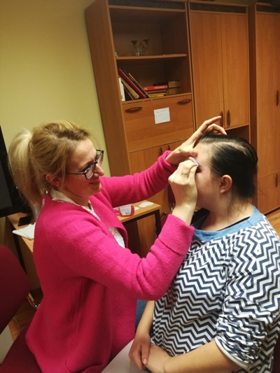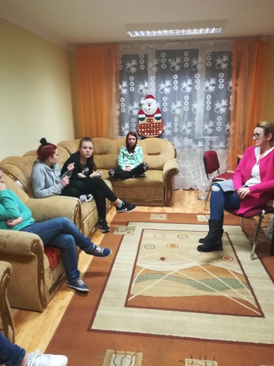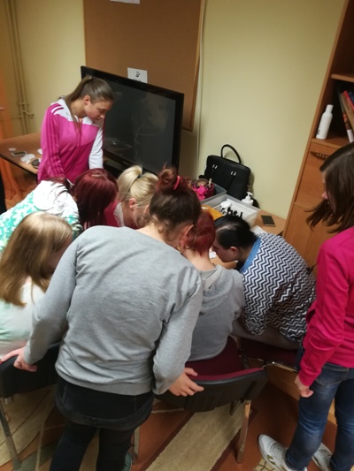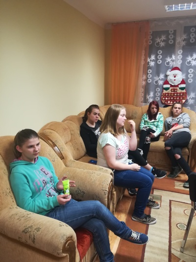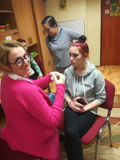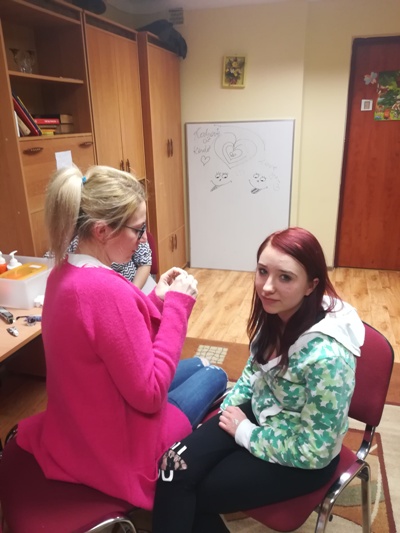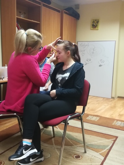 Realizując założenia programu profilaktycznego – wychowanki internatu uczestniczyły w warsztatach Zdrowie i uroda kobiety. Zajęcia prowadzone były przez panią kosmetolog Katarzynę Tabaka. W trakcie spotkania pani Katarzyna poruszyła temat prawidłowego odżywiania, konieczność stałego dbania o siebie, wybierania dobrych kosmetyków, dobranych odpowiednio do wieku. Opowiadała o swojej pracy, o możliwościach nauki oraz doskonalenia swoich umiejętności w czasie różnorodnych kursów i warsztatów. Podczas spotkania wykonywała dziewczętom zabiegi pielęgnacyjne oraz upiększające, odpowiadała na pytania.