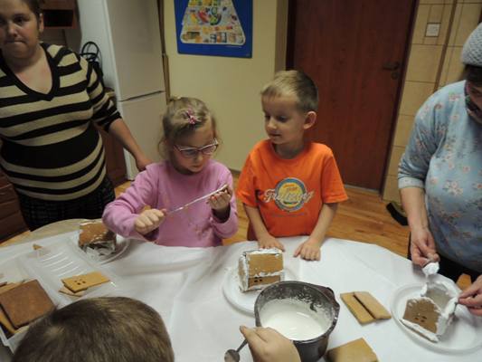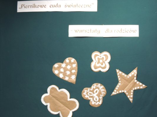 Warto dodać, że podczas warsztatów rodzice zmierzyli się z wykonaniem piernikowej chatki oraz choinki. W miłej przedświątecznej atmosferze rodzice udekorowali wiele cudownych pierniczków.