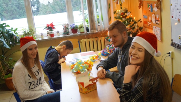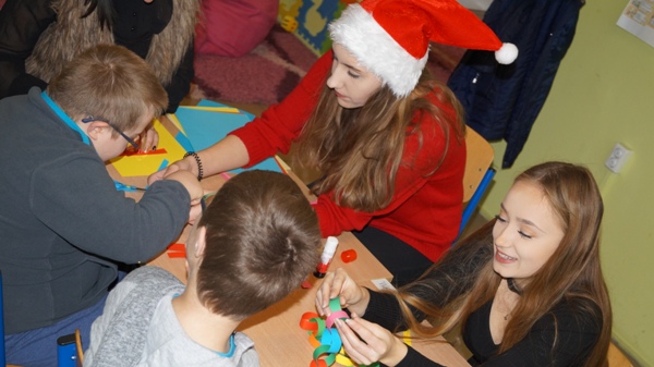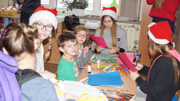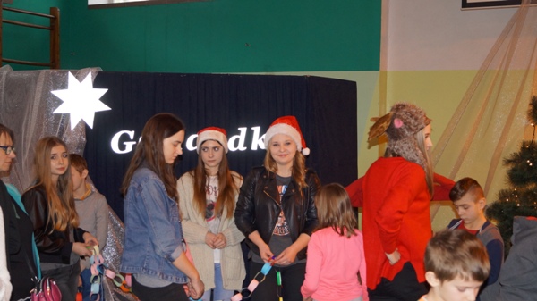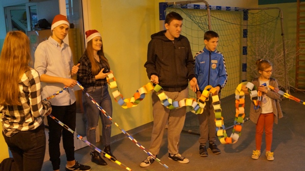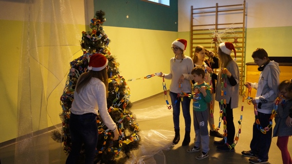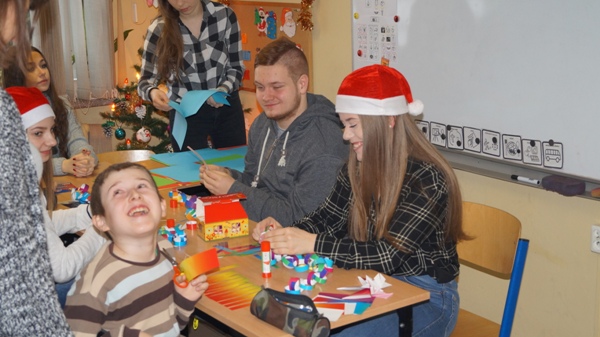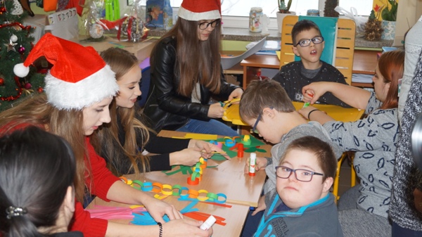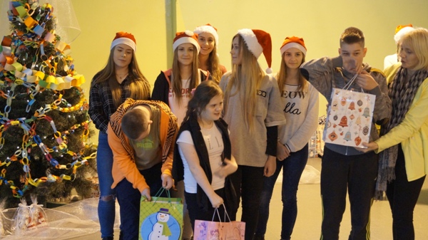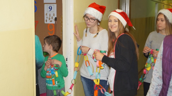 We wtorek w naszej szkole miało miejsce wyjątkowe wydarzenie otóż do najmłodszych uczniów naszego ośrodka zawitali wyjątkowi goście Uczniowie klasy II D Liceum Ogólnokształcącego im. Ks. Stanisława Staszica w Hrubieszowie. Goście udali się do klas by uczestniczyć w artystycznych warsztatach integracyjnych. Przeróżnymi technikami malowali, wycinali, kleili…. Każda grupa miała za zadanie przygotować kolorowy łańcuch choinkowy. Po zajęciach wszyscy spotkaliśmy się przy choince, która została udekorowana połączonym ze wszystkich przygotowanych w klasach elementów, 100 metrowym łańcuchem przyjaźni. Pod ozdobioną choinką znalazły się prześliczne prezenty przygotowane przez uczniów Zespołu Szkół Nr 2 w Hrubieszowie. Ta piękna Akcja pod hasłem Młodzież – Dzieciom – Gwiazdka 2017 odbyła się po raz 11. Sympatyczne elfy rozdały dzieciom prezenty. Radości nie było końca. Na zakończenie Gwiazdki śpiewaliśmy kolędy.